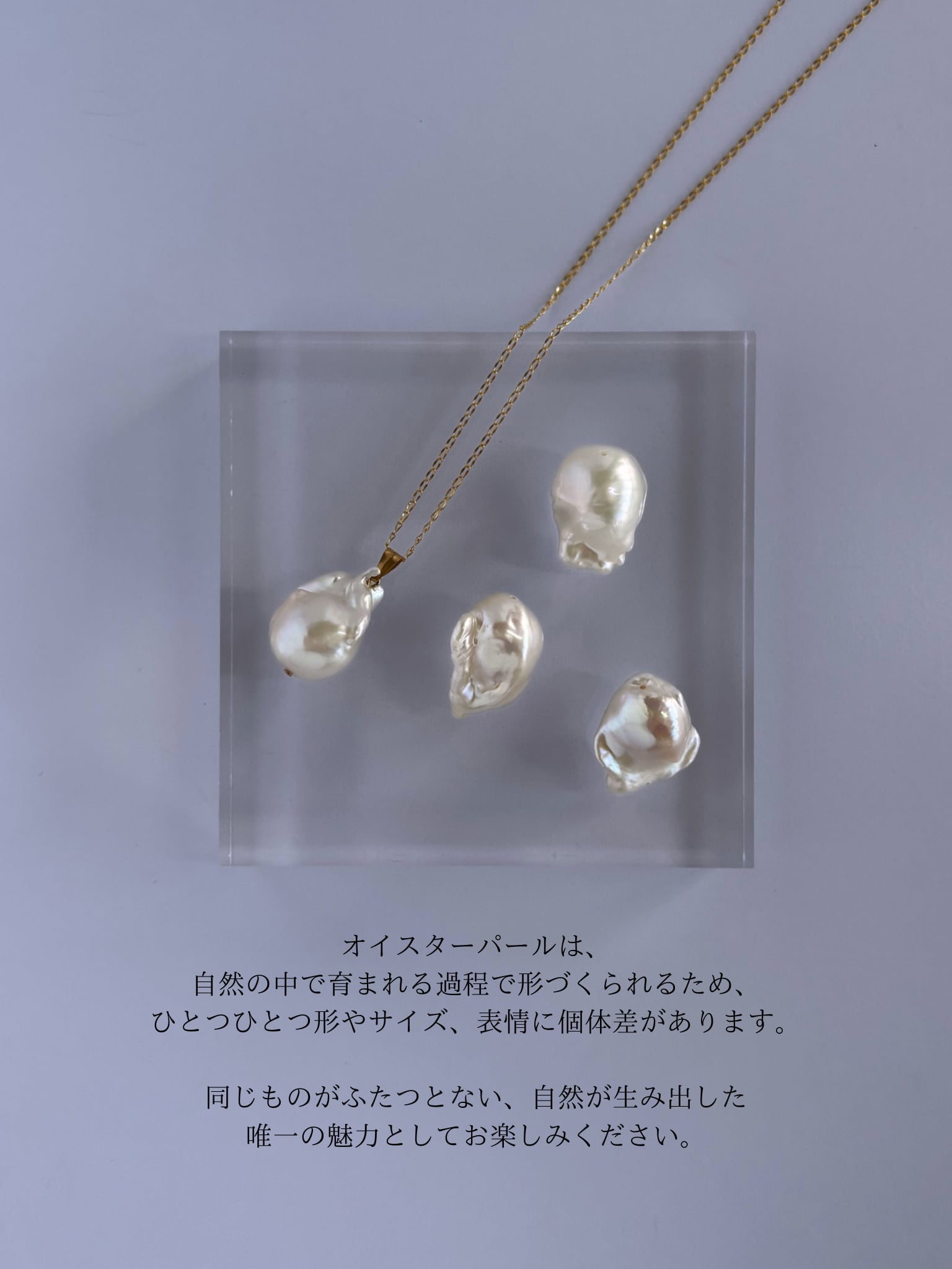 オイスターパールは天然のため、一粒ごとに形・色・サイズ感に個性があります。掲載写真と異なる場合がございますが、それも自然素材ならではの魅力としてお楽しみください。