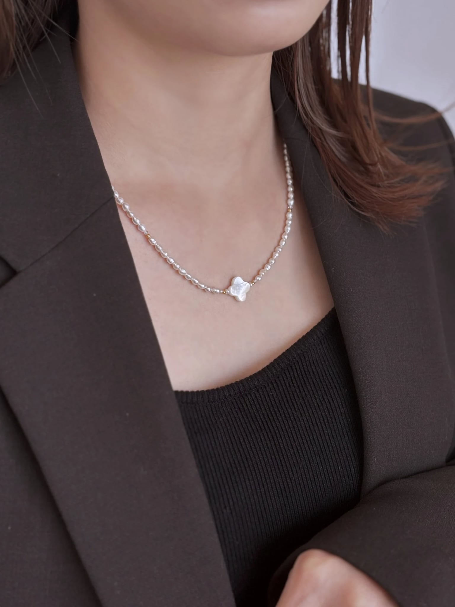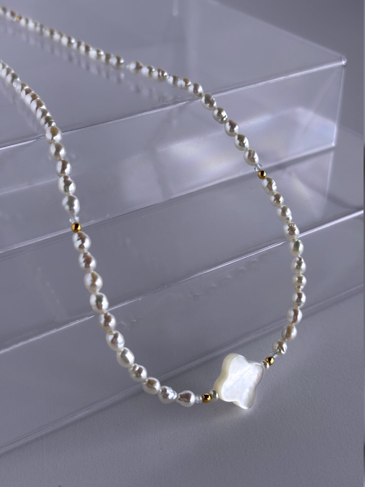 淡水パールやマザーオブパールは天然のため、一粒ごとに形・色・サイズ感に個性があります。掲載写真と異なる場合がございますが、それも自然素材ならではの魅力としてお楽しみください。