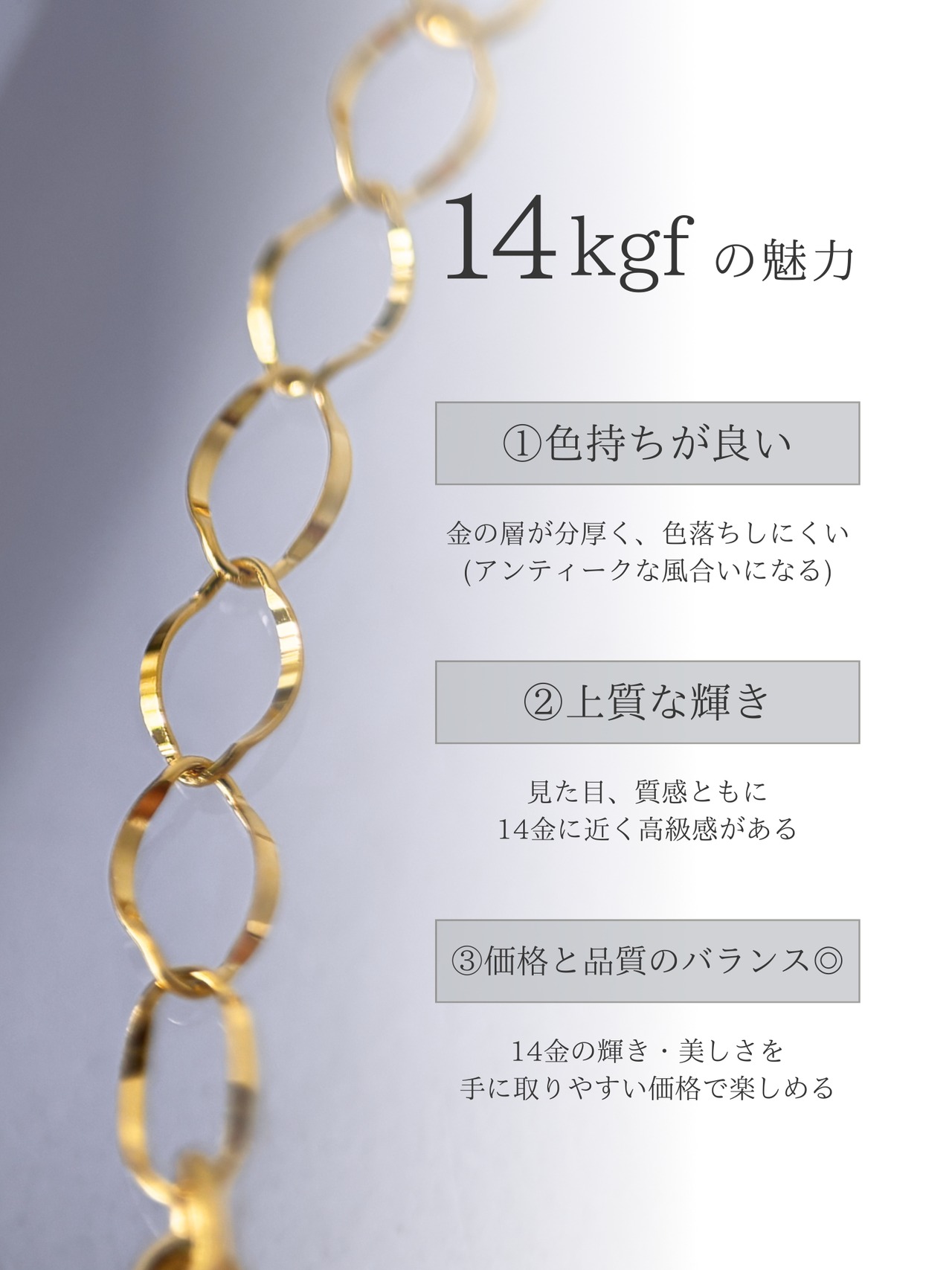 温かみのあるゴールドが特徴で、