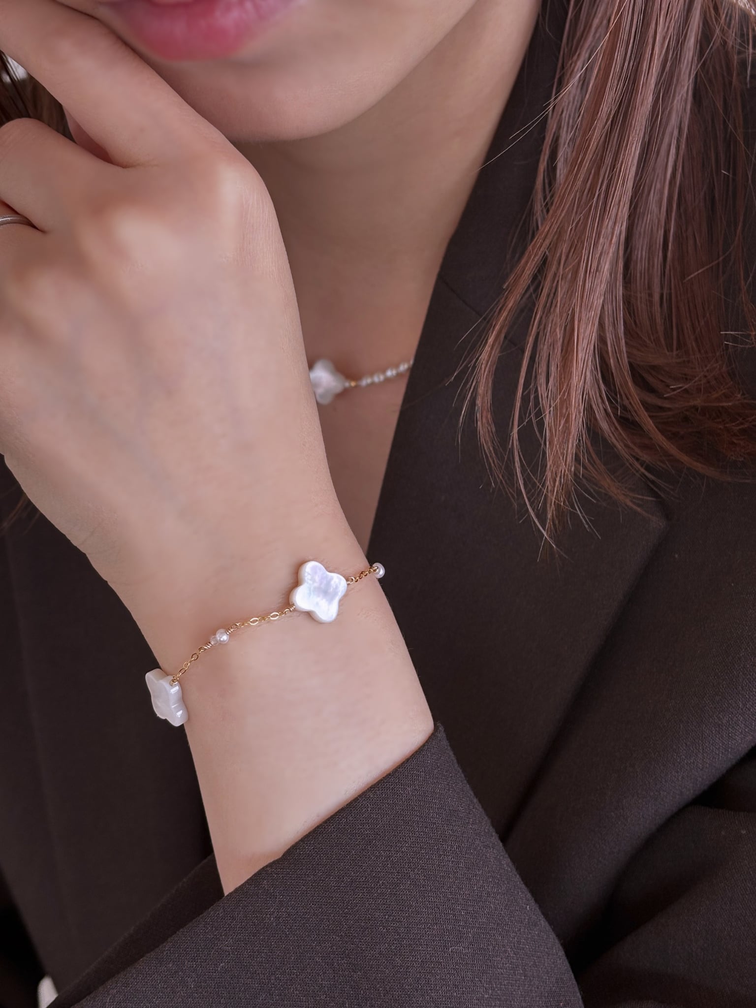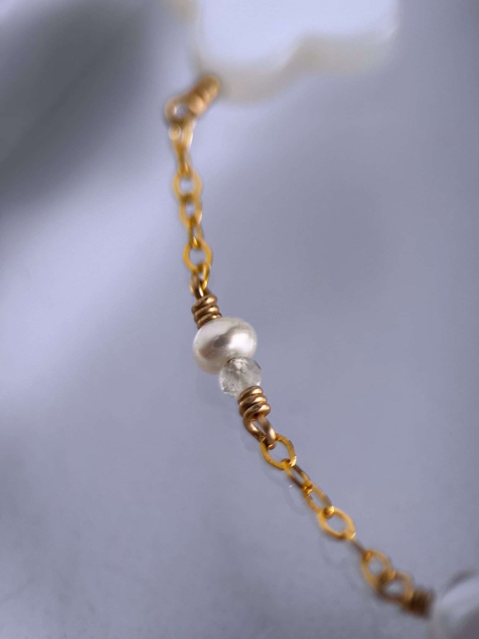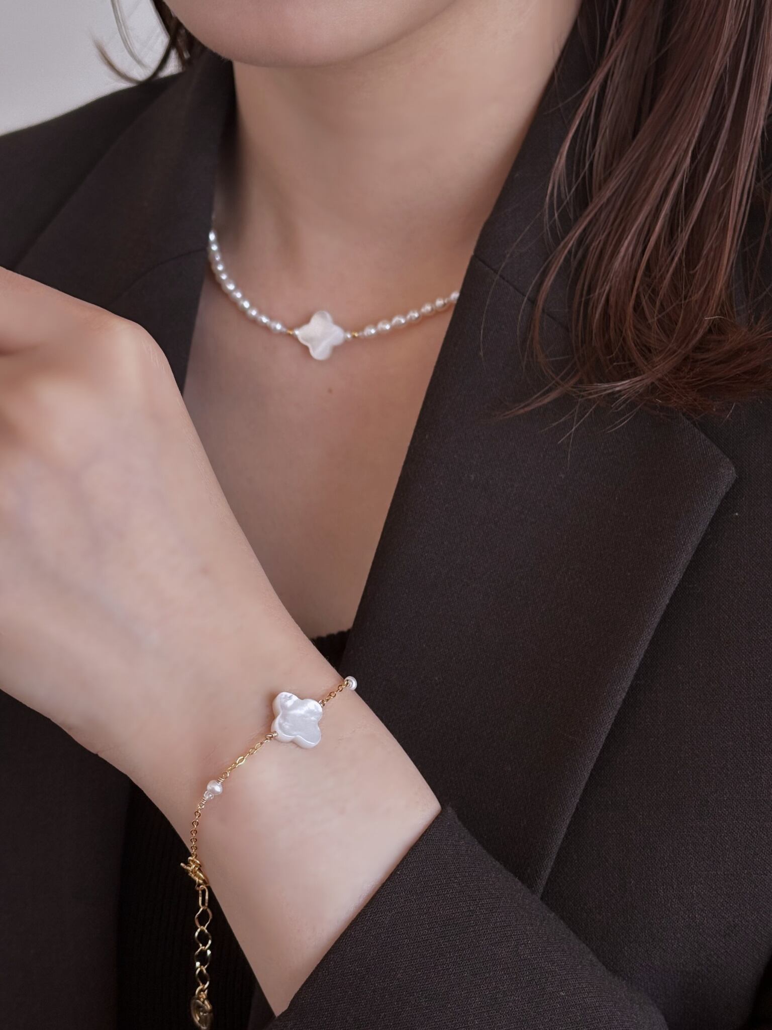 淡水パールやマザーオブパールは天然のため、一粒ごとに形・色・サイズ感に個性があります。掲載写真と異なる場合がございますが、それも自然素材ならではの魅力としてお楽しみください。
