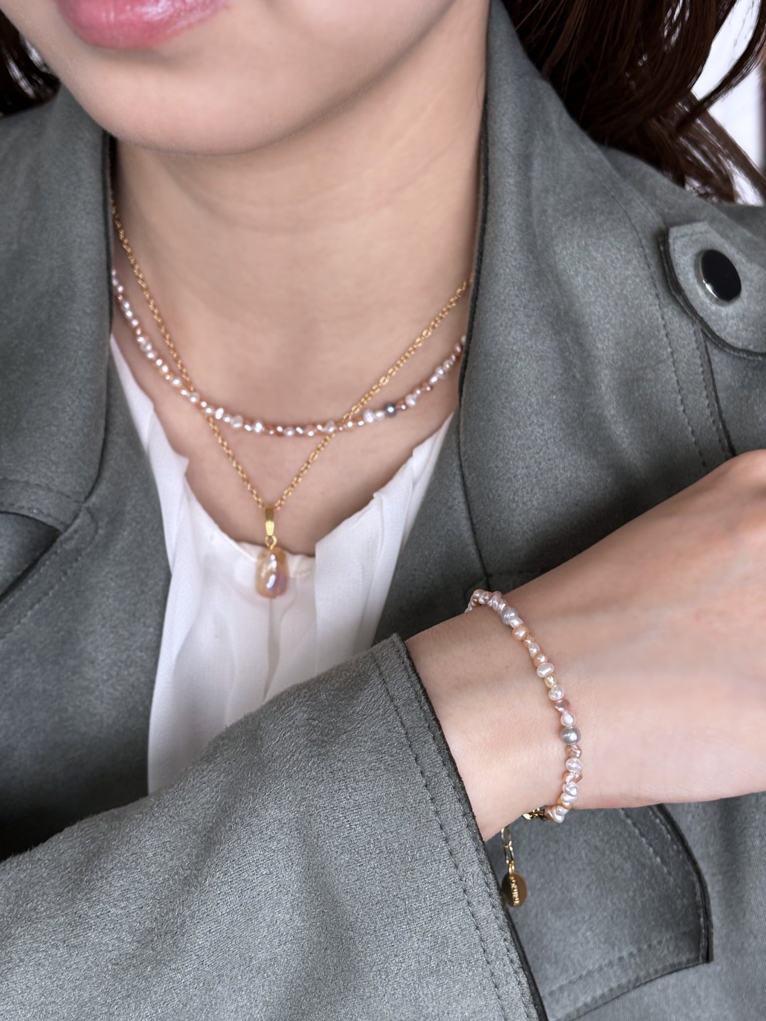 ・淡水パールや天然石は天然のため、一粒ごとに形・色・サイズ感に個性があります。掲載写真と異なる場合がございますが、それも自然素材ならではの魅力としてお楽しみください。